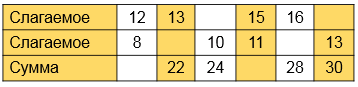 | Слагаемое | 12 | 13 | 15 | 16 | ||