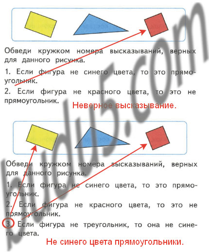 1. Если фигура не синего цвета, то это прямоугольник.