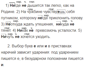 1) (Н..) где (н..) дышится так легко, как на Родине. 2) На чужбине чувству..шь себя путником, которому (н..) где приклонить голову. 3) (Н..) откуда ждать утешения, (н..) куда (н..) тянет. 4) (Н..) как (н..) превозмочь усталости. 5) (Н..) чуть (н..) хочется уходить.