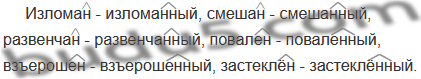 Изломан, смешан, развенчан, повален, взъерошен, застеклён.