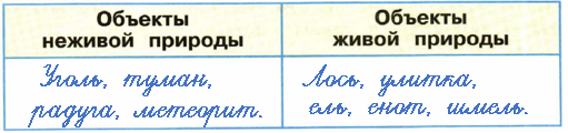4. Заполняем таблицу, приводя примеры объектов живой и неживой природы.