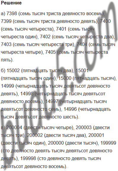| а) от 7398 до 7405 | в) от 200004 до 199998 |