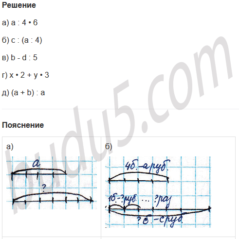 в) У Маши было b руб. Она купила 5 кексов по d руб. Сколько денег у неё осталось?