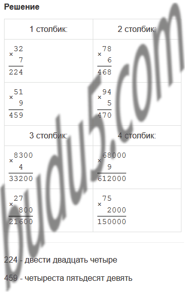 Задание № 8. Выполни умножение в столбик и прочитай полученные числа: