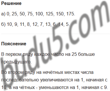| 1) 0, 25, 50, 75 ... | 2) 10, 9, 11, 8, 12, 7 ... |