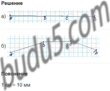 Задание № 11. АВ = 3 см 8 мм, ВС = 2 см 5 мм, CD = 3 см. Начерти отрезки АВ, ВС и CD, если они: а) лежат на одной прямой; б) образуют ломаную линию.