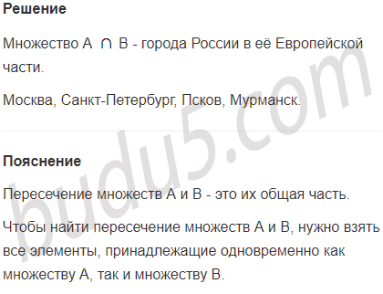 Задание № 13. А - множество городов России, В - множество городов Европы. Что представляет собой множество А  В? Назови несколько элементов этого множества.