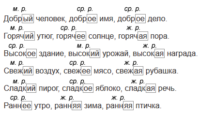 • Выделите окончания имён прилагательных, объясните их написание. Укажите род имён прилагательных.