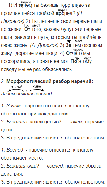 1) И (за) чем ты бежишь торопливо за промчавшейся тройкой (во) след? (Я. Некрасов) 2) Ты делаешь свои первые шаги но жизни. (От) того, каковы будут эти первые шаги, зависит и путь, которым ты пройдёшь свою жизнь. (Л. Дорохов) 3) (За) тем окошком живут дорогие мне люди. 4) (От) чего мы поссорились, я понять не мог. (По) этому поводу мы не раз объяснялись.