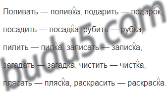 Образуйте при помощи суффиксов -к- и -ок- однокоренные существительные. Запишите.