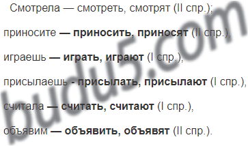 Смотрела — смотреть, смотрят; приносите, играешь, присылаешь, считала, объявим.